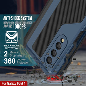 Galaxy Z Fold4 Metal Case, Heavy Duty Military Grade Armor Cover Full Body Hard [Blue]