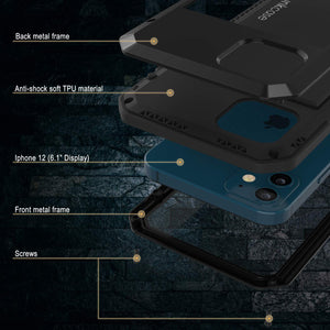 Apple iPhone 12 Metal Case Heavy Duty Military Grade Rugged Armor Cover [Shockproof] Hybrid Full Body Hard Aluminum & TPU Design [Non Slip] Compatible with Samsung Apple iPhone 12 [Black]