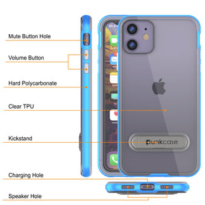 iPhone 12 Case, PUNKcase [LUCID 3.0 Series] [Slim Fit] [Clear Back] Protective Cover w/ Integrated Kickstand, Anti-Shock System & PUNKSHIELD Screen Protector for Apple iPhone 12 [blue]