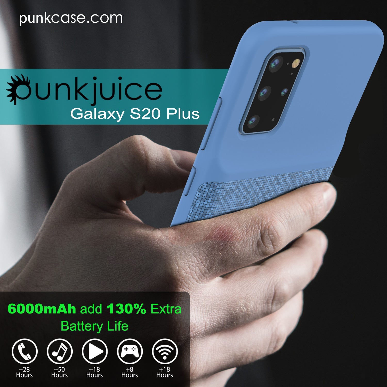 PunkJuice S20 Plus Battery Case, 6000mAh Fast Charging Extended Power Bank W/Screen Protector | IntelSwitch | Slim, Secure and Reliable Compatible W/Samsung Galaxy S20 Plus [Blue]